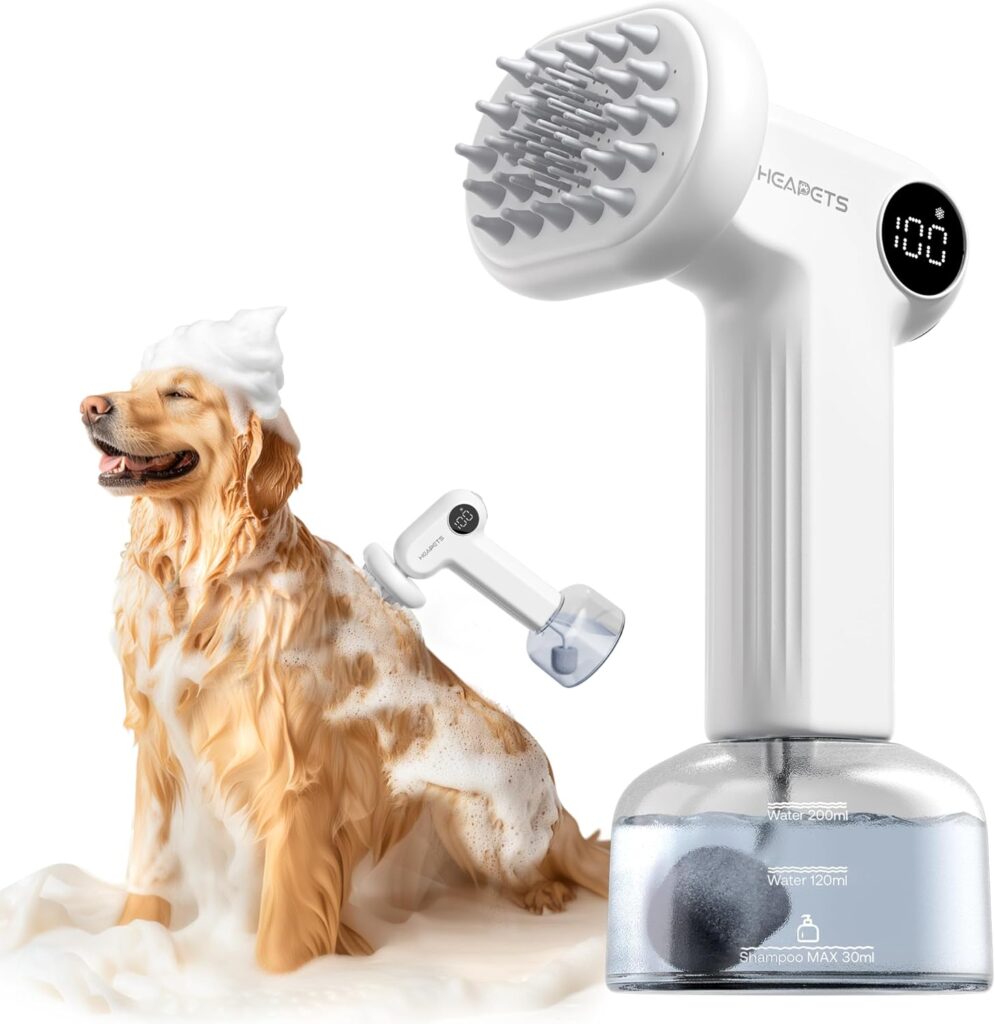 Electric Dog Shampoo Dispenser with Shampoo Brush, Shampoo Foamer for Dogs Bathing, Massaging and Grooming, Two Foaming Modes, Rechargeable Dog Foam Sprayer for Short and Long Haired Pet